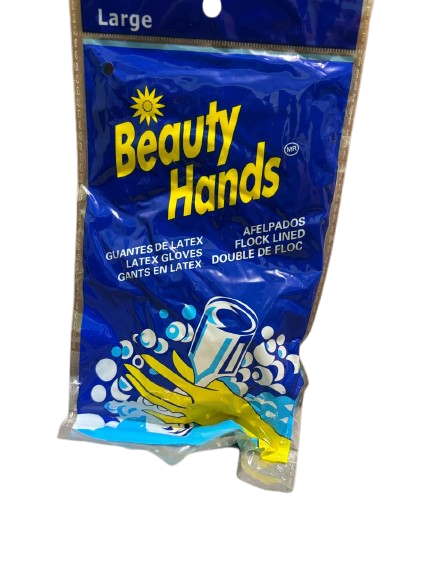Protect your hands while cleaning with Beauty Hands Latex Gloves. Made from durable latex, these gloves provide excellent resistance against water, detergents, and household cleaning chemicals. The flock-lined interior ensures added comfort, making them easy to wear for extended tasks such as dishwashing, scrubbing, or general household chores.